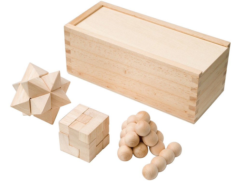 Набор головоломок. 3 головоломки в подарочной деревянной коробке. Пирамидка 7 х 7 см Шестигранник 5,9 х 5,9 см Куб 3,7 х 3,7 см