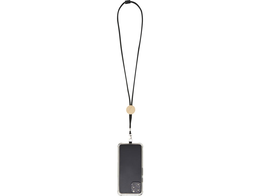 Носите свой телефон стильно с помощью шнурка для смартфона Адхаб. Центральная часть изготовлена из бамбука, полученного ответственным образом, что добавляет дизайну природный акцент. Этот элемент не только улучшает внешний вид, но и является идеальной площадкой для брендинга. Этот практичный и стильный шнурок идеально подходит для повседневного использования или мероприятий.