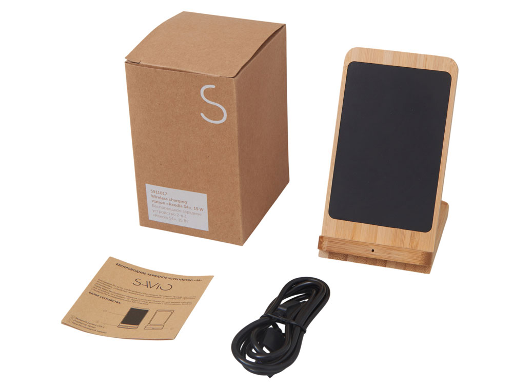 Беспроводное зарядное устройство 2-в-1 с подсветкой лого Reedia S4, 15 Вт, бамбук, черный