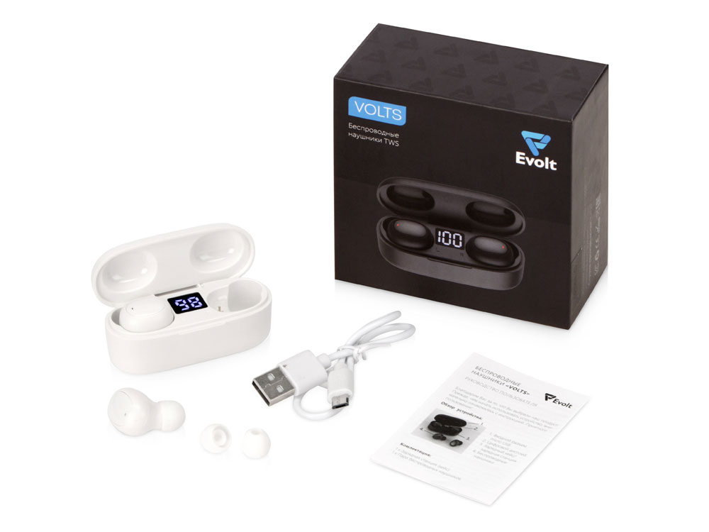 Беспроводные наушники TWS в кейсе Volts. Evolt, белый, пластик купить оптом и в розницу с нанесением логотипа в Ростове-на-Дону
