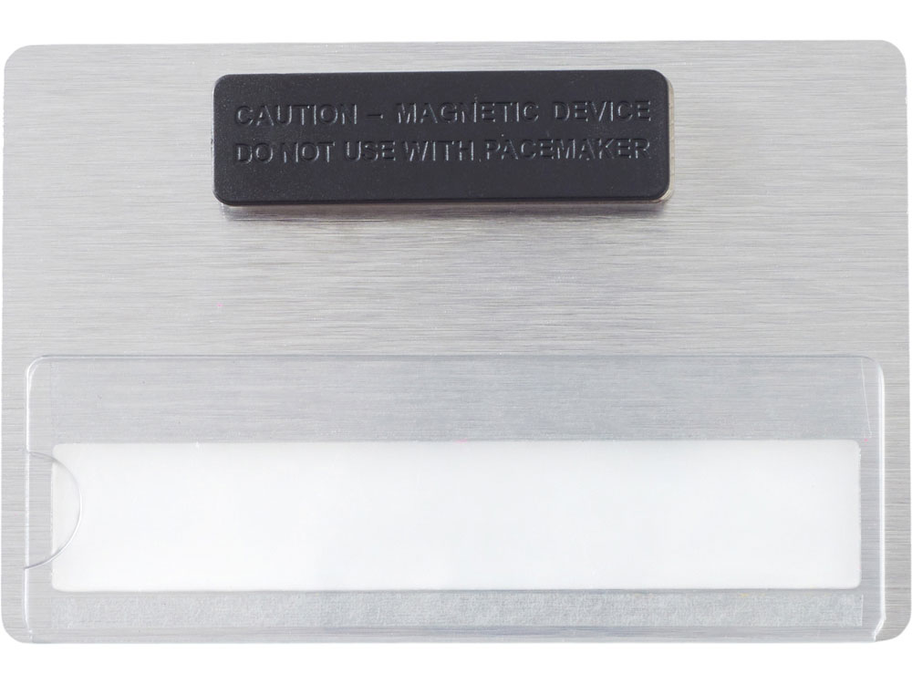 Прочный магнитный бейдж, изготовленный из металла. Магнитное крепление позволяет быстро прикрепить и снять бейдж без лишних усилий и проколов на ткани.