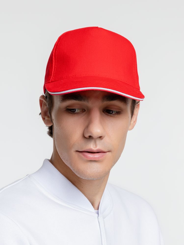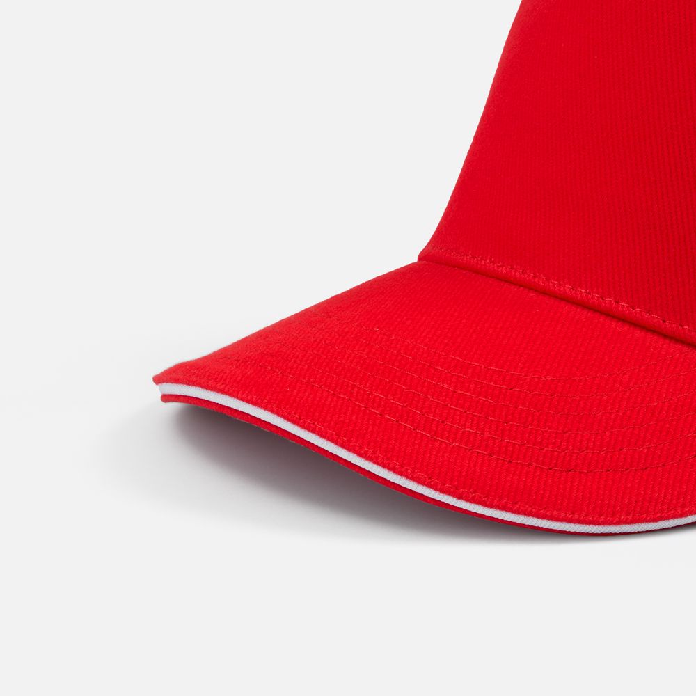 Бейсболка Classic 2.0, красная с белым кантом купить оптом и в розницу с нанесением логотипа в Ростове-на-Дону