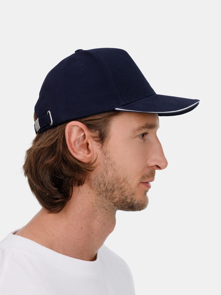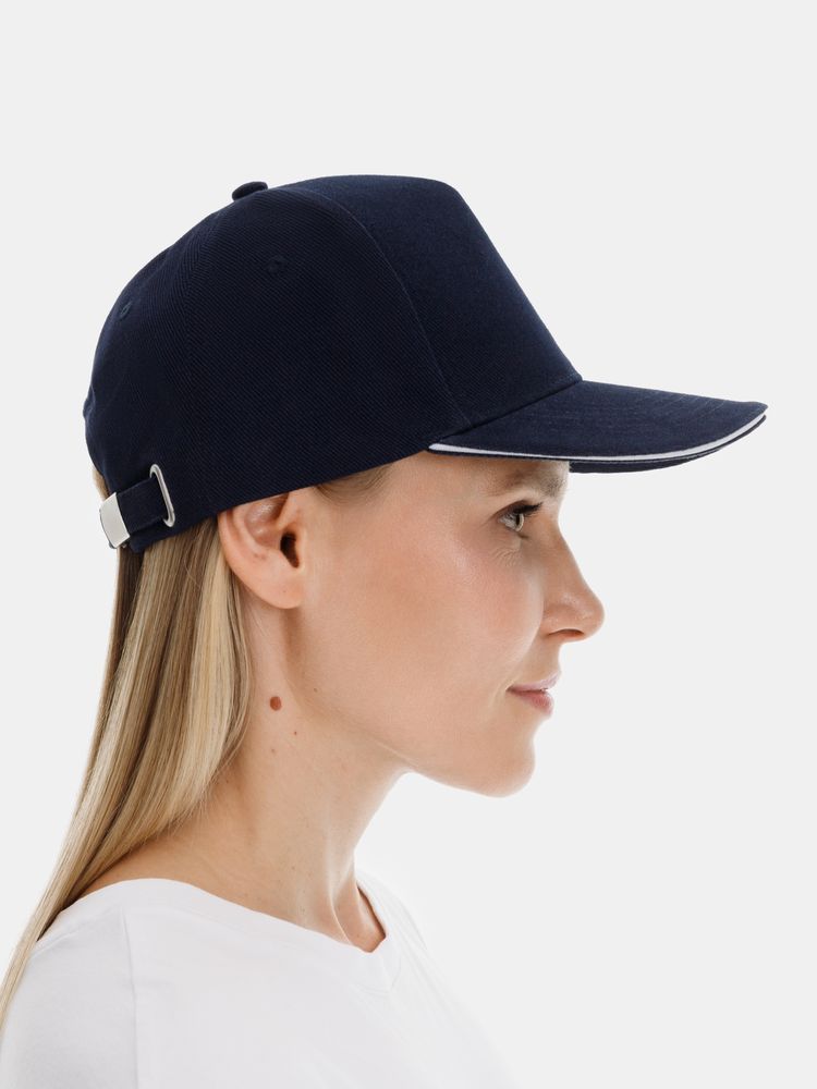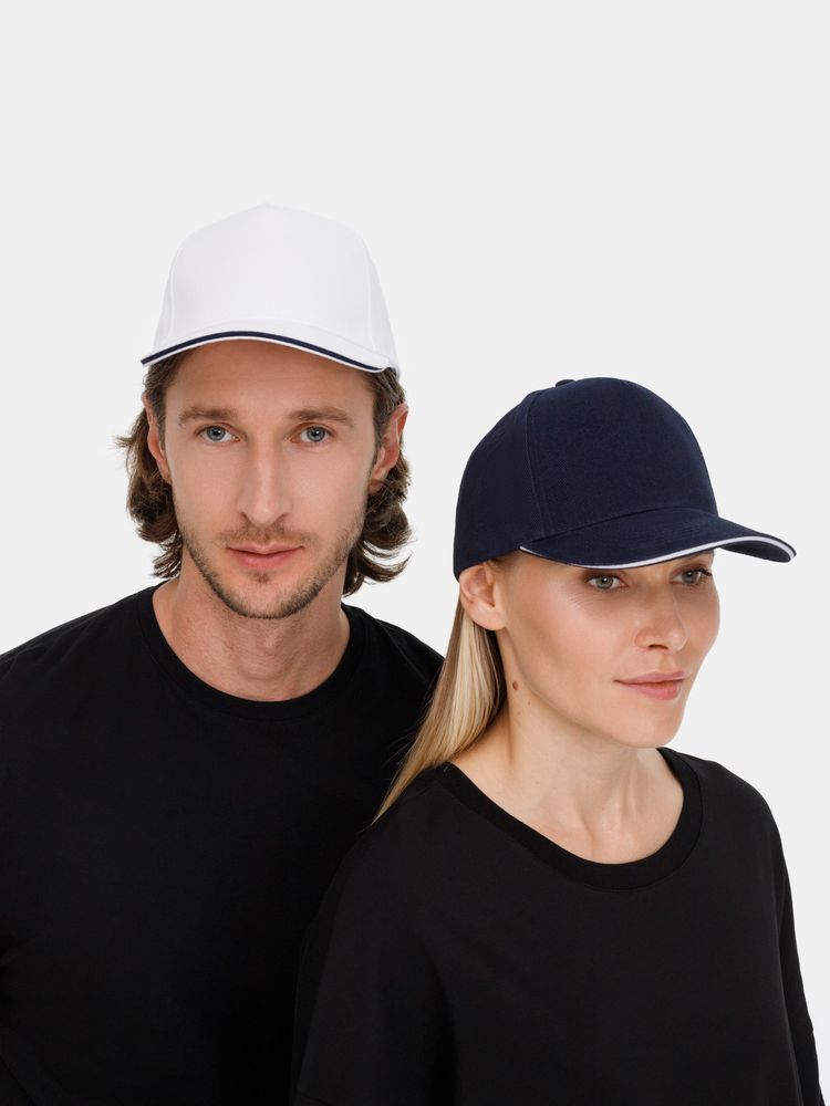 Бейсболка Classic 2.0, темно-синяя с белым кантом купить оптом и в розницу с нанесением логотипа в Ростове-на-Дону