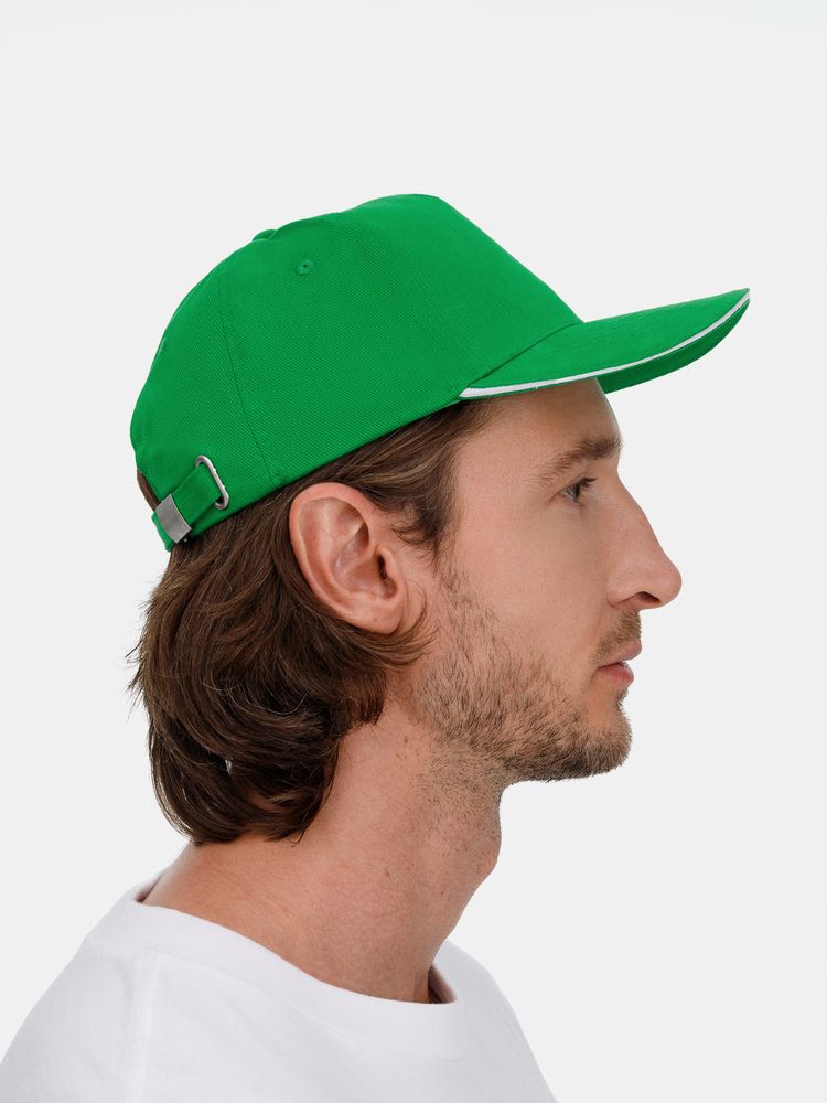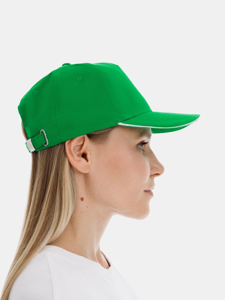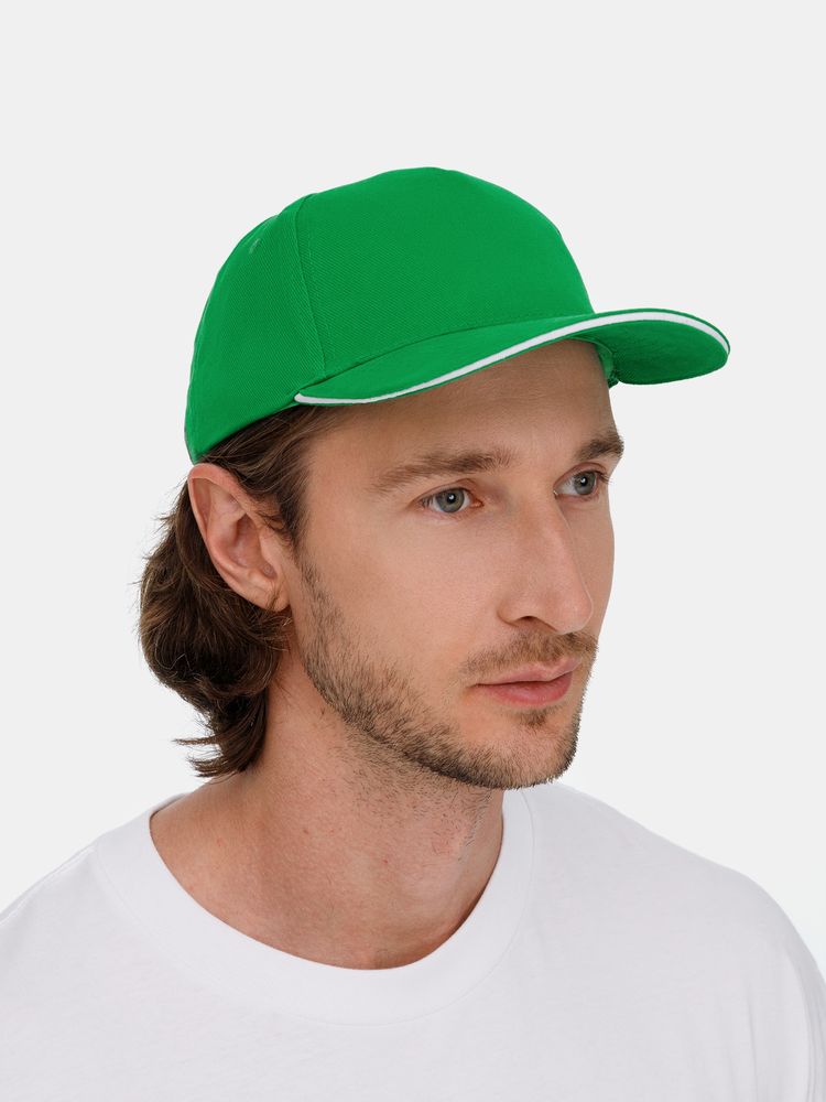 Бейсболка Classic 2.0, ярко-зеленая с белым кантом купить оптом и в розницу с нанесением логотипа в Ростове-на-Дону