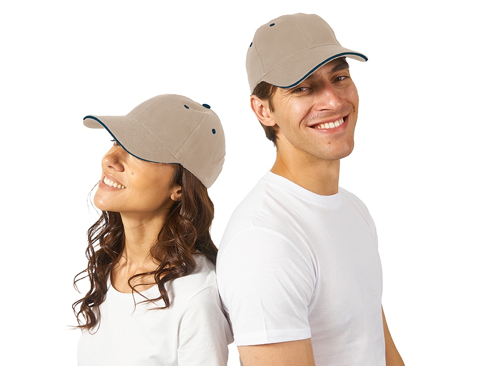 Стильная 6-панельная промо-бейсболка с контрастными деталями. Отличный выбор для яркого и запоминающегося брендинга. - Классическая бейсболка сшита из 6 панелей. - Яркие акценты – контрастная верхняя пуговичка, а также вышитые люверсы – стильная деталь, привлекающая внимание и усиливающая узнаваемость бренда. - Эффективная вентиляция: люверсы обеспечивают комфорт при носке - Премиальный вид козырька конструкции сэндвич с декоративным контрастным кантом по краю, не только эстетично, но и повышает жесткость и долговечность козырька. - Удобная посадка - регулируемая застежка на липучке (велкро) гарантирует идеальное прилегание на любую голову.