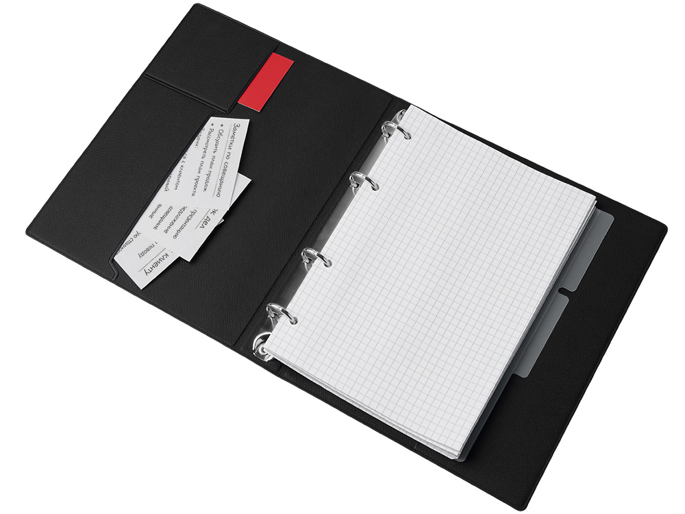 Блокнот Favor на кольцах делает его практически бесконечным в использовании, т.к. листы очень легко меняются и добавляются, а обложка из искусственной кожи делает его очень износостойким. Обложка с карманами для визиток и различных записок. В блоке есть 2 разграничителя, которые могут использоваться как ляссе или разделители разных тем. Благодаря кольцам, листки и разделители легко вынимаются и вставляются обратно. В блоке 80 листов бумаги 70 г/м2. Favor — серия товаров, выполненных из экокожи, что позволяет составлять из этой продукции стильные бизнес-сеты в едином стиле.