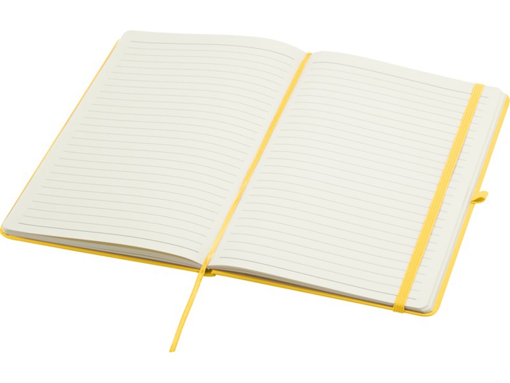 Блокнот Spectrum Plus формата А5 в твердой обложке с закругленными углами — это не только необходимая вещь в офисе, но и прекрасная возможность для продвижения вашего бренда. Картонный блокнот имеет мягкую на ощупь обложку и 80 линованных листов кремового цвета плотностью 70 г/м², идеально подходит для записи быстрых идей или длинных заметок. Блокнот оснащен петлей для ручки, эластичной застежкой, ленточкой-закладкой и карманом-гармошкой.