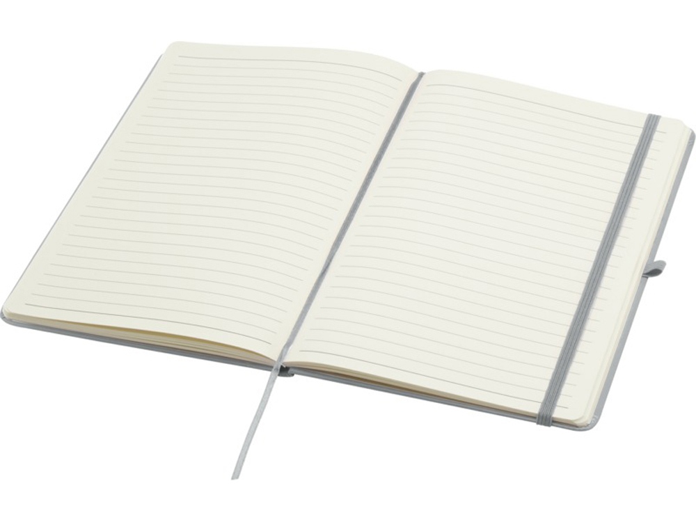 Блокнот Spectrum Plus формата А5 в твердой обложке с закругленными углами — это не только необходимая вещь в офисе, но и прекрасная возможность для продвижения вашего бренда. Картонный блокнот имеет мягкую на ощупь обложку и 80 линованных листов кремового цвета плотностью 70 г/м², идеально подходит для записи быстрых идей или длинных заметок. Блокнот оснащен петлей для ручки, эластичной застежкой, ленточкой-закладкой и карманом-гармошкой.