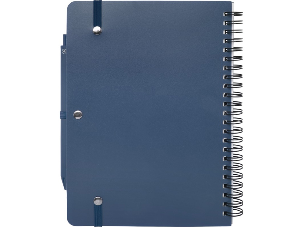 Блокнот Thalaasa формата A5 в твердой обложке изготовлен из переработанного океанического пластика и содержит 80 линованных листов кремовой бумаги плотностью 70 г/м². Блокнот имеет закругленные углы, эластичную застежку и петлю для ручки. Шариковая ручка с черными чернилами также изготовлена из переработанного океанического пластика. Длина непрерывной линии: 1000 метров. Размер пера: 1,0 мм.