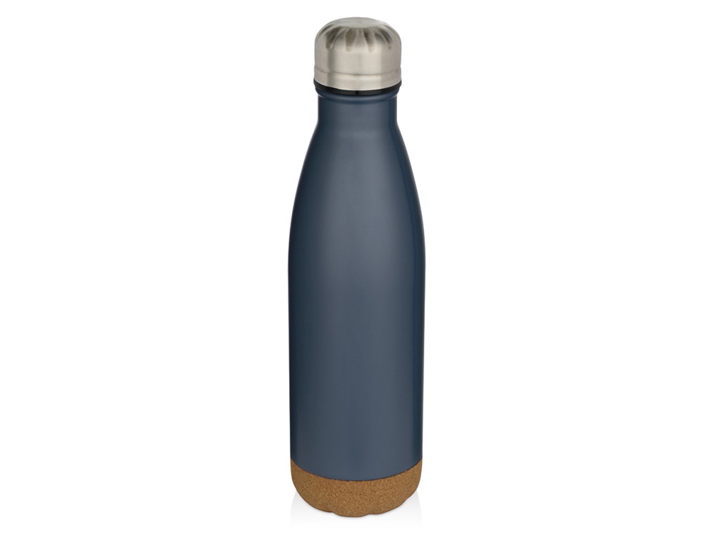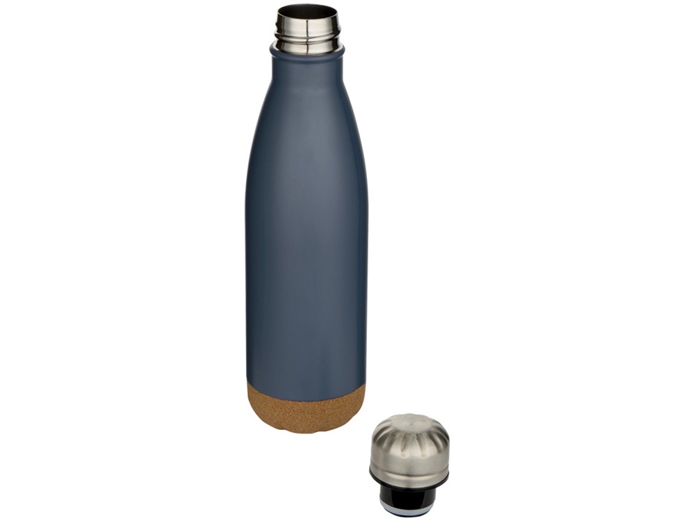 Бутылка для воды Cove из нержавеющей стали с двойными стенками и вакуумной изоляцией, объемом 500 мл, с пробковыми деталями - Hale Blue купить оптом и в розницу с нанесением логотипа в Ростове-на-Дону