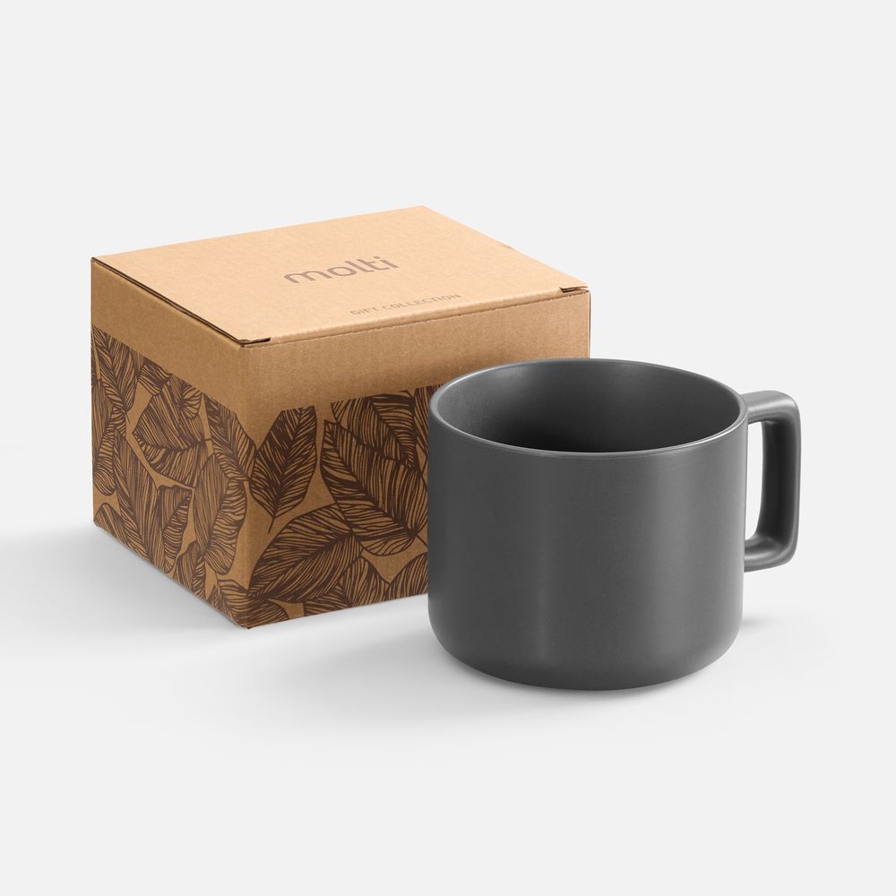 Чашка Jumbo в коробке матовая, темно-серая купить оптом и в розницу с нанесением логотипа в Ростове-на-Дону