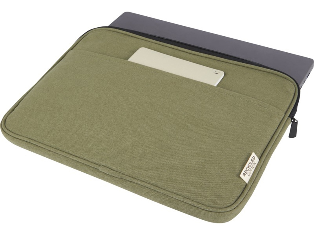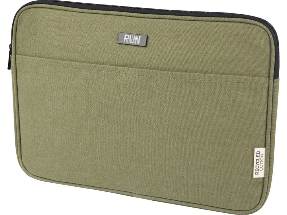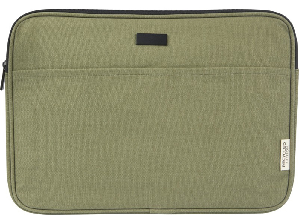 Чехол для 14-дюймового ноутбука Joey объемом 2 л из брезента, переработанного по стандарту GRS, оливковый купить оптом и в розницу с нанесением логотипа в Ростове-на-Дону