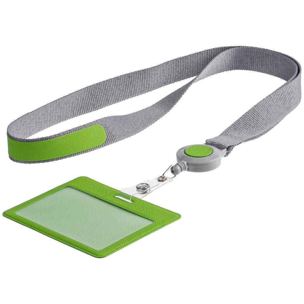 • Лента для бейджа с ретрактором Devon, серая с зеленым
