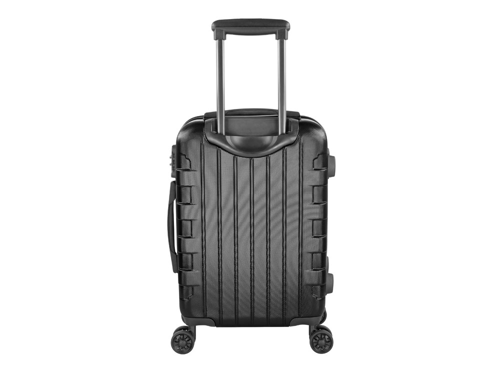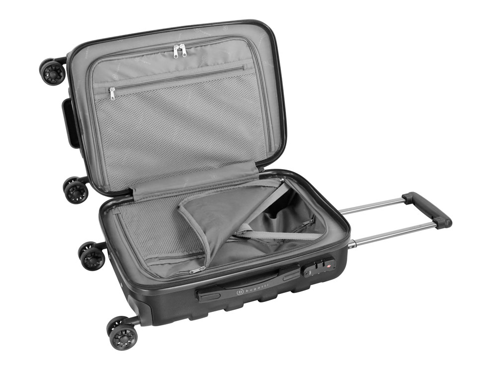 ЧЕМОДАН GALATEA Galatea - наша неповторимая серия чемоданов с рельефно нанесённым на корпус большим логотипом Bugatti. Вся товарная линейка представлена в классическом чёрном цвете. Благодаря корпусу, сделанному из смеси АБС-пластика и поликарбоната, каждая модель отличается лёгким весом и повышенной прочностью. Четыре резиновых колеса с бесшумным ходом и возможностью поворота на 360° обеспечивают ровное движение. Лёгкая телескопическая ручка эргономичной формы фиксируется в нескольких положениях для удобства пользователей с разным ростом. Замок TSA с трехзначным кодом идеально подходит для защиты содержимого багажа от несанкционированного вскрытия. Дополнительная ручка на дне корпуса облегчает загрузку и выгрузку чемодана. Сетчатые разделительные стенки на молнии растягиваются для удобства упаковки, а фиксирующие ремни охватывают большую поверхность и обеспечивают сохранность сложенных вещей. СВОЙСТВА Внутренняя организация: основное отделение на молнии с 2 отсеками, 2 сетчатыми перегородками на молнии и фиксирующими ремнями Внешняя организация: телескопическая ручка, кодовый замок TSA, 4 двойных колеса, боковая ручка, ручка на дне Размер: 36,5 x 24,5 x 56 см Объём: 38 л Вес: 2,78 кг Материал: поликарбонат / АБС-пластик