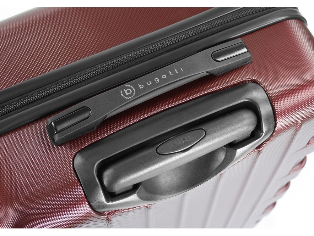 ЧЕМОДАН GALATEA Galatea - наша неповторимая серия чемоданов с рельефно нанесённым на корпус большим логотипом Bugatti. Вся товарная линейка представлена в классическом черном и бордовом цветах. Благодаря корпусу, сделанному из смеси АБС-пластика и поликарбоната, каждая модель отличается лёгким весом и повышенной прочностью. Четыре резиновых колеса с бесшумным ходом и возможностью поворота на 360° обеспечивают ровное движение. Лёгкая телескопическая ручка эргономичной формы фиксируется в нескольких положениях для удобства пользователей с разным ростом. Замок TSA с трехзначным кодом идеально подходит для защиты содержимого багажа от несанкционированного вскрытия. Дополнительная ручка на дне корпуса облегчает загрузку и выгрузку чемодана. Сетчатые разделительные стенки на молнии растягиваются для удобства упаковки, а фиксирующие ремни охватывают большую поверхность и обеспечивают сохранность сложенных вещей. СВОЙСТВА Внутренняя организация: основное отделение на молнии с 2 отсеками, 2 сетчатыми перегородками на молнии и фиксирующими ремнями Внешняя организация: телескопическая ручка, кодовый замок TSA, 4 двойных колеса, боковая ручка, ручка на дне Размер: 46 x 27,5 x 67 см Объём: 65 л Вес: 3,62 кг Материал: поликарбонат / АБС-пластик