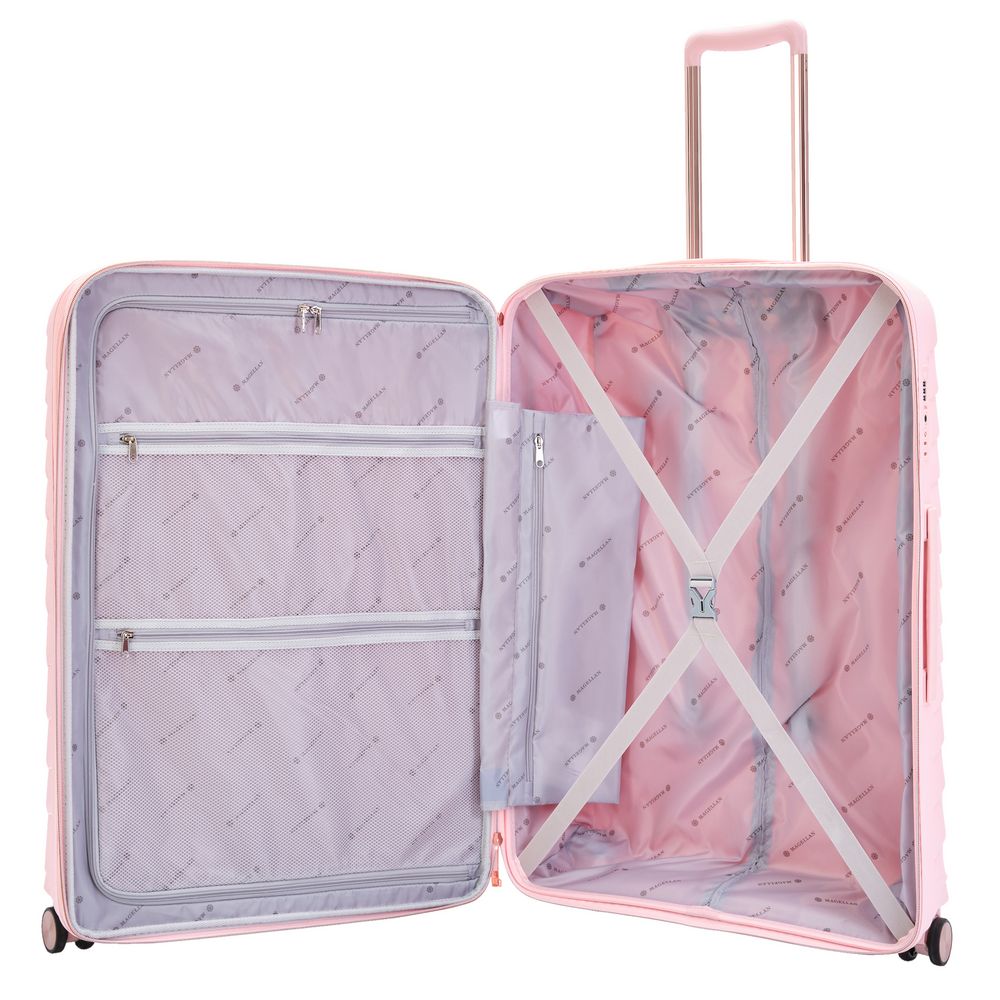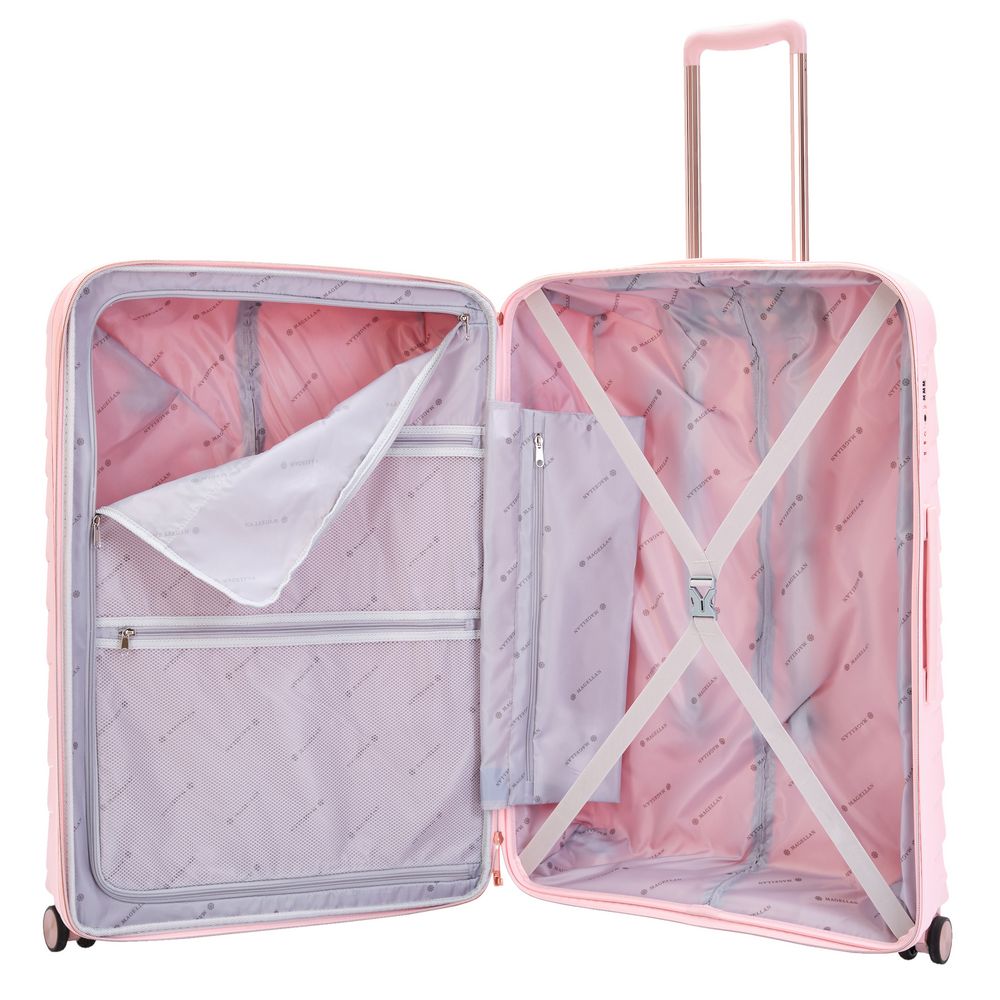 Чемодан из женственной коллекции Victoria имеет стильную обтекаемую форму и узор с плавными волнами, который выделяют его среди других. Нежные оттенки придают чемодану элегантный вид, подчеркивая индивидуальность и хороший вкус путешественницы.