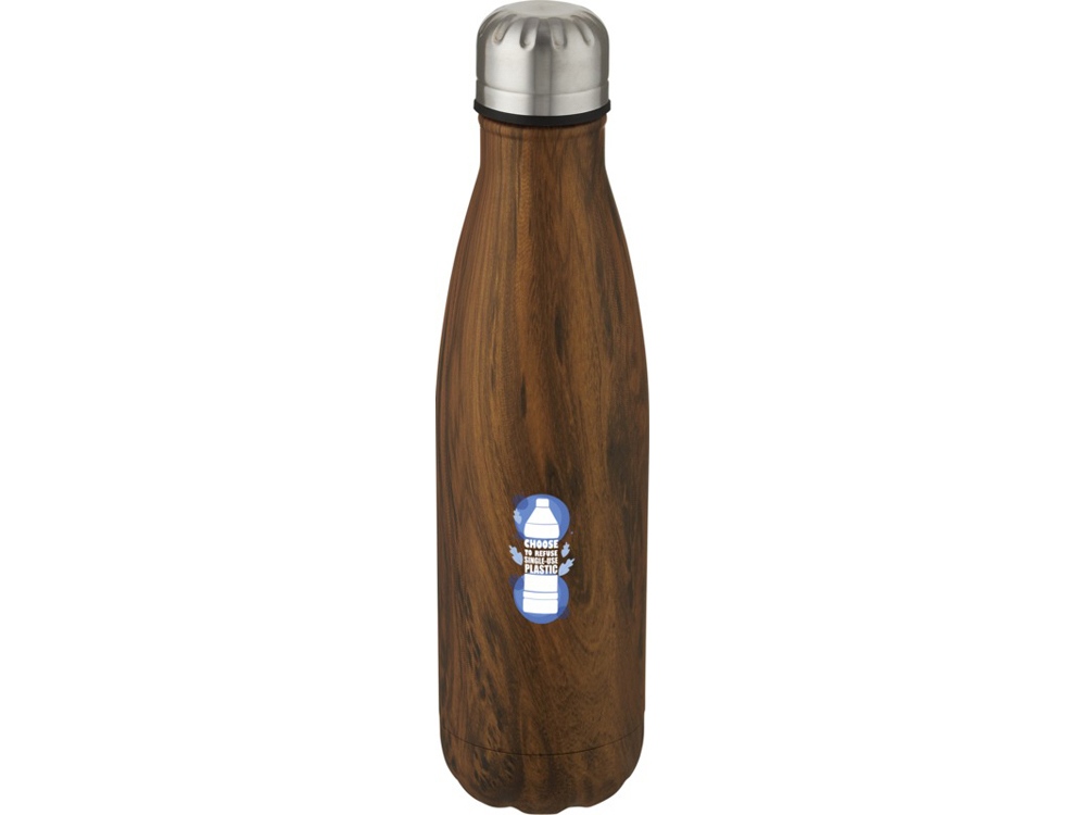 Cove бутылка из нержавеющей стали объемом 500 мл с вакуумной изоляцией и деревянным принтом, heather natural купить оптом и в розницу с нанесением логотипа в Ростове-на-Дону