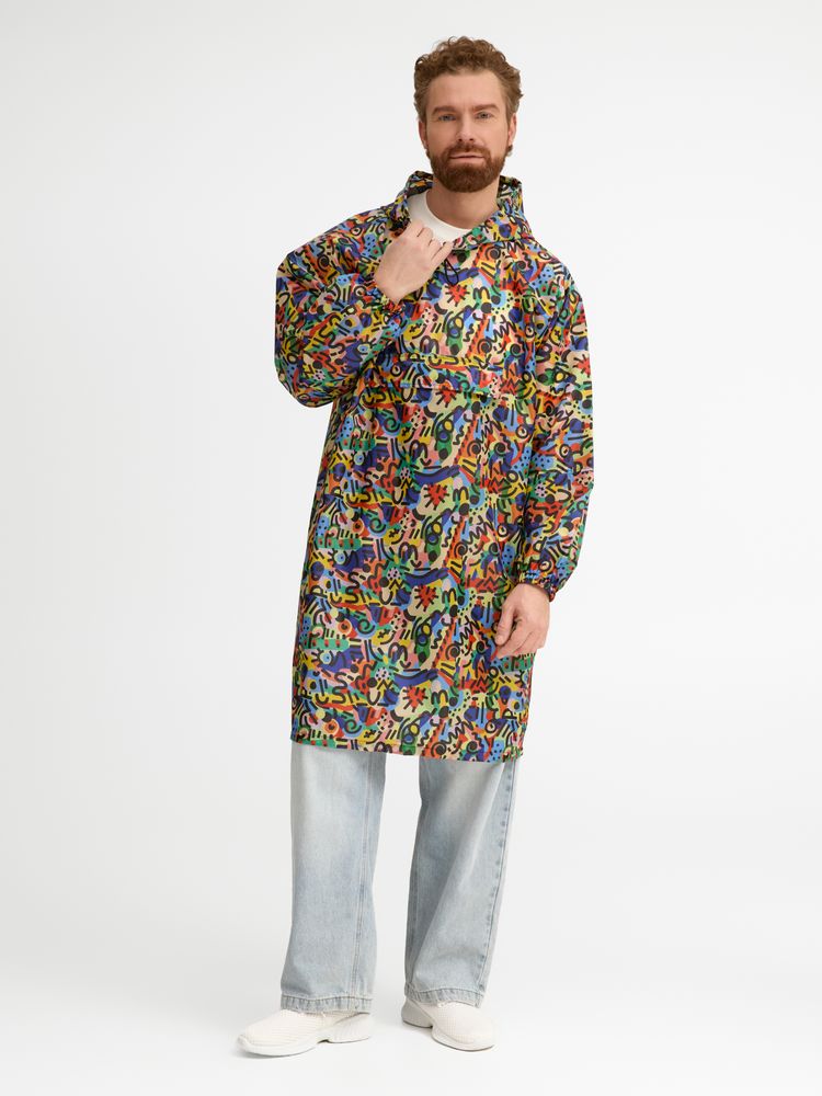 Приложите к заказу оригинал-макет закольцованного бесшовного (endless) узора или паттерна в виде квадрата или прямоугольника с разрешением 300 dpi в масштабе 1 к 1. Полные технические требования к оригинал-макетам смотрите в пункте «Сублимация».Дождевик-анорак с капюшоном из ткани таффета.
