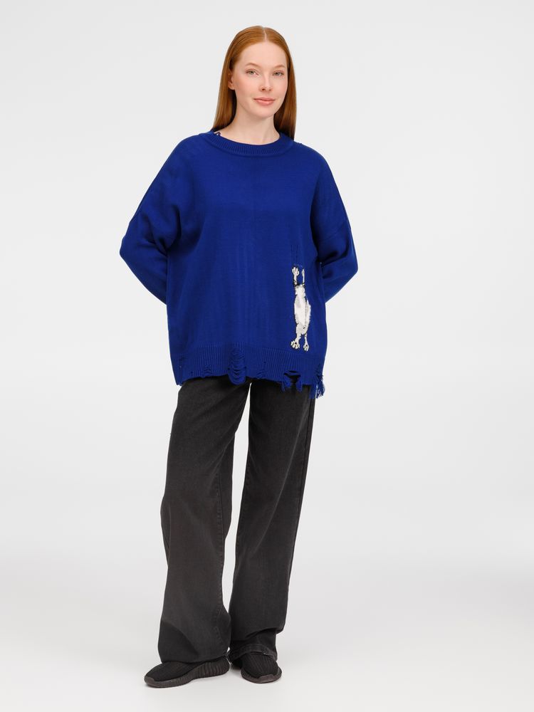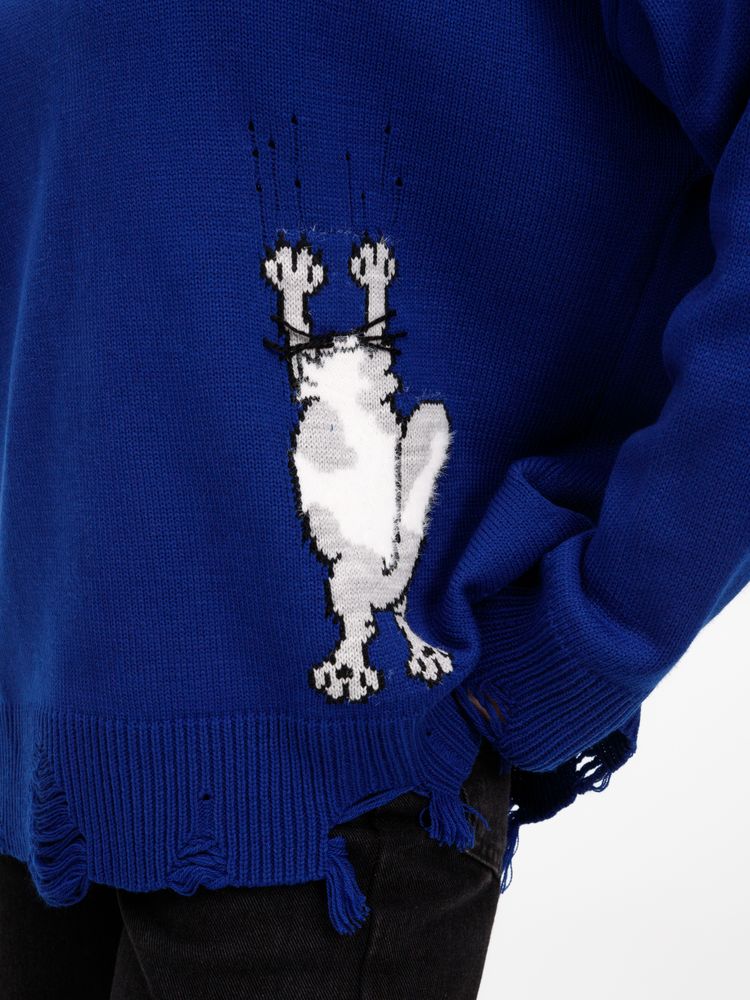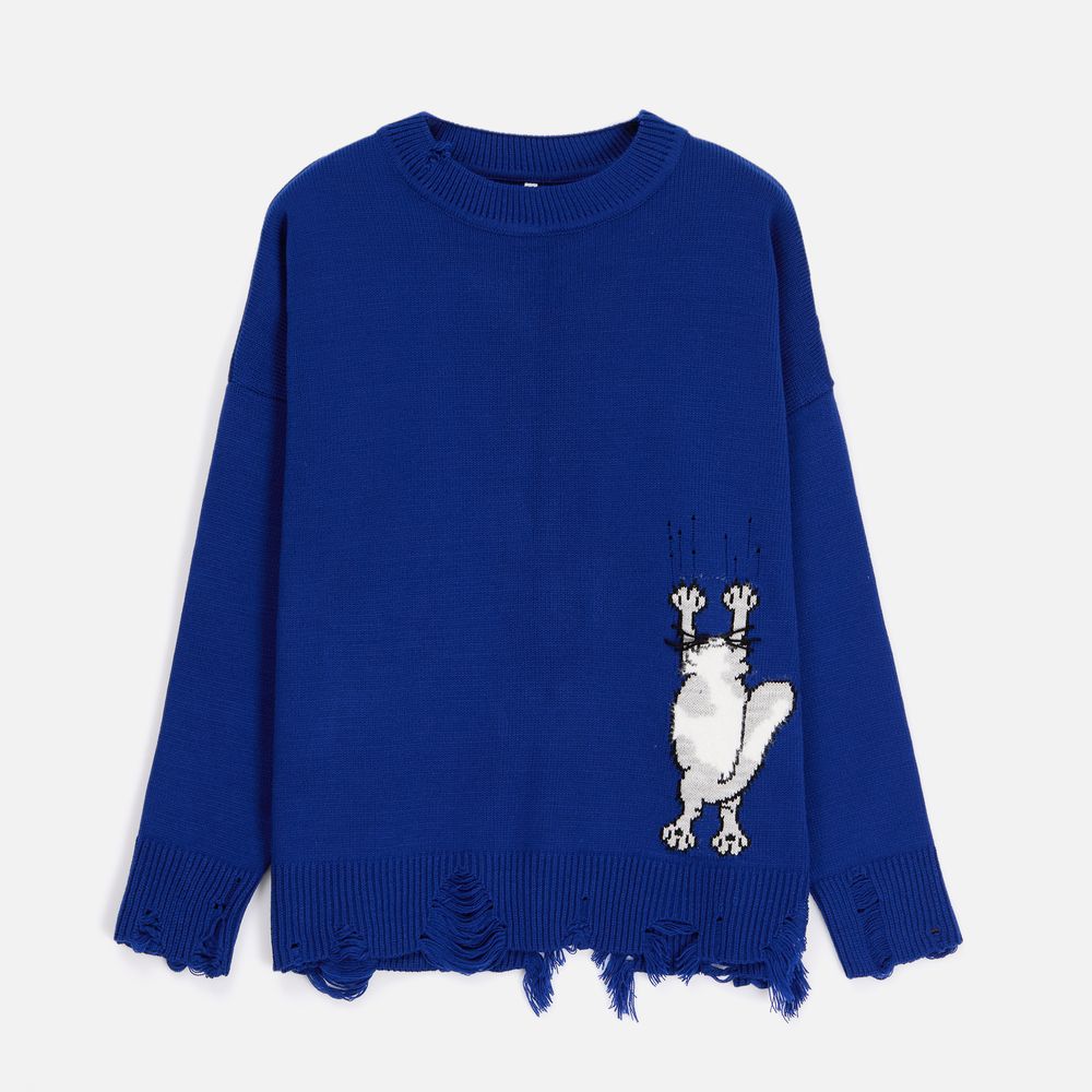 Мягкий джемпер с круглым вырезом и милым пушистым рисунком в виде котика создает настроение легкой несерьезности. Рваные края изделия добавляют современную нотку, а резинка на вороте, манжетах и по низу обеспечивает удобную посадку. Джемпер Sharpick — идеальный выбор для тех, кто ценит комфорт и хочет разнообразить свой гардероб.