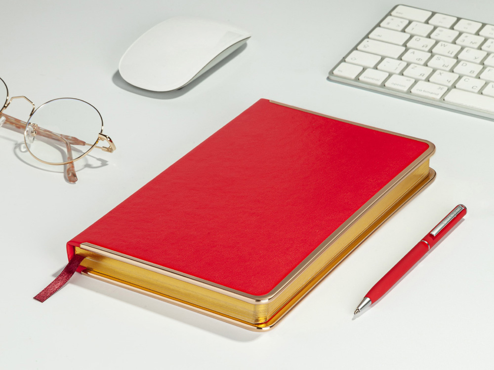 Ежедневник А5 недатированный Chelsea, красный (золотистый кант и срез) (Р) купить оптом и в розницу с нанесением логотипа в Ростове-на-Дону