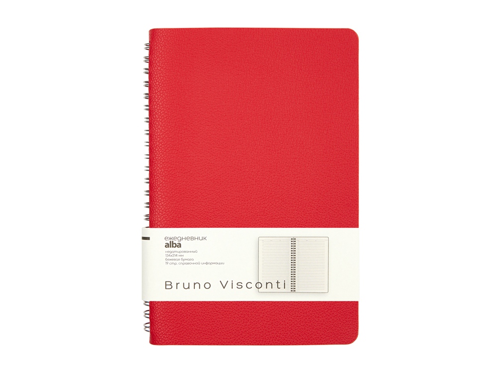 Недатированный ежедневник Alba ТМ Bruno Visconti формата А5 сочетает в себе два тренда, набирающих популярность среди современных деловых людей: полускрытый гребень, позволяющий переворачивать листы на 360 градусов, и мягкая гибкая обложка из искусственной кожи высокого качества исполнения. Внутренний блок изготовлен из бежевой бумаги плотностью 70 г/кв.м и содержит 272 страницы, в т.ч. оригинальную справочную информацию на 19 страницах
