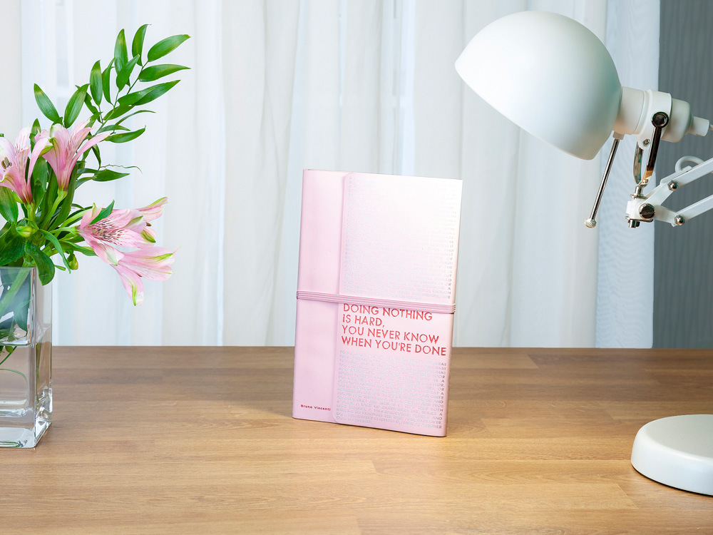 Так трудно ничего не делать, ведь совершенно непонятно, когда ты закончишь! Лаконичный слоган мотивирует к активным действиям. Планируй и завершай! Вот что кроется в элегантной надписи, выполненной золотым тиснением! А Flex обложка напоминает Будь гибким! Великолепный недатированный ежедневник Bilbao черно-синего цвета с тиснением фольгой. Бежевая бумага 65 г/м, широкая горизонтальная фиксирующая резинка. Гибкая обложка с покрытием Soft-touch. Особенность этого ежедневника - часть обложки внахлест может использоваться как закладка. Ежедневник упакован в картонный полукороб и термопленку.