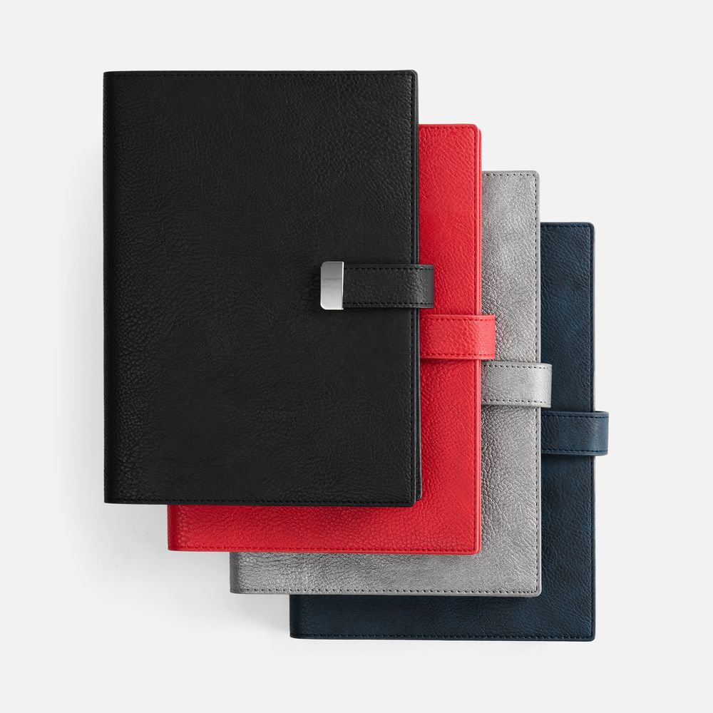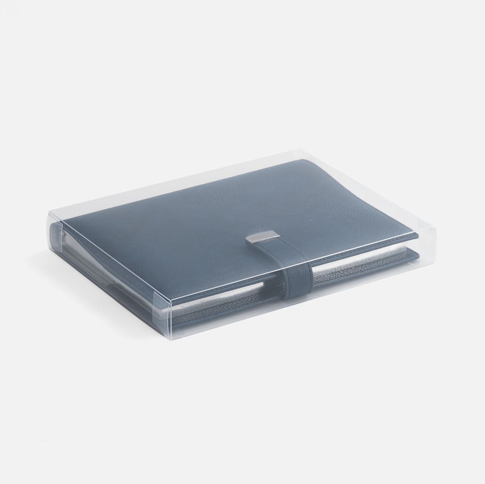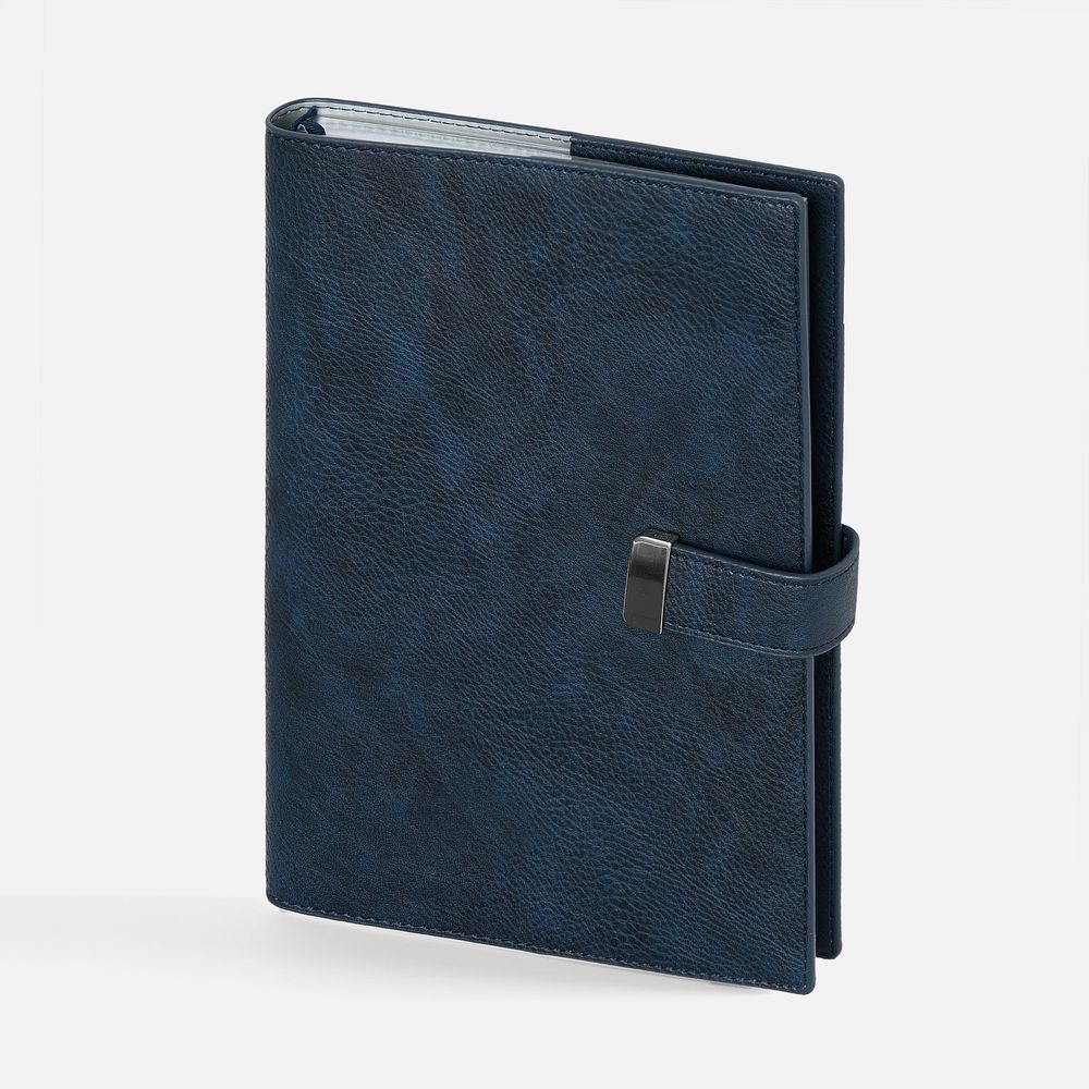 Ежедневник в мягком переплете со съёмная обложкой, дополнен застёжкой-хлястиком  с металлическим шильдом на кнопке, двойным ляссе и капталом.