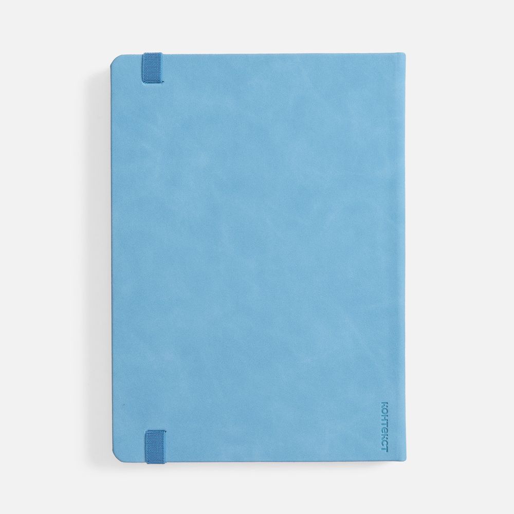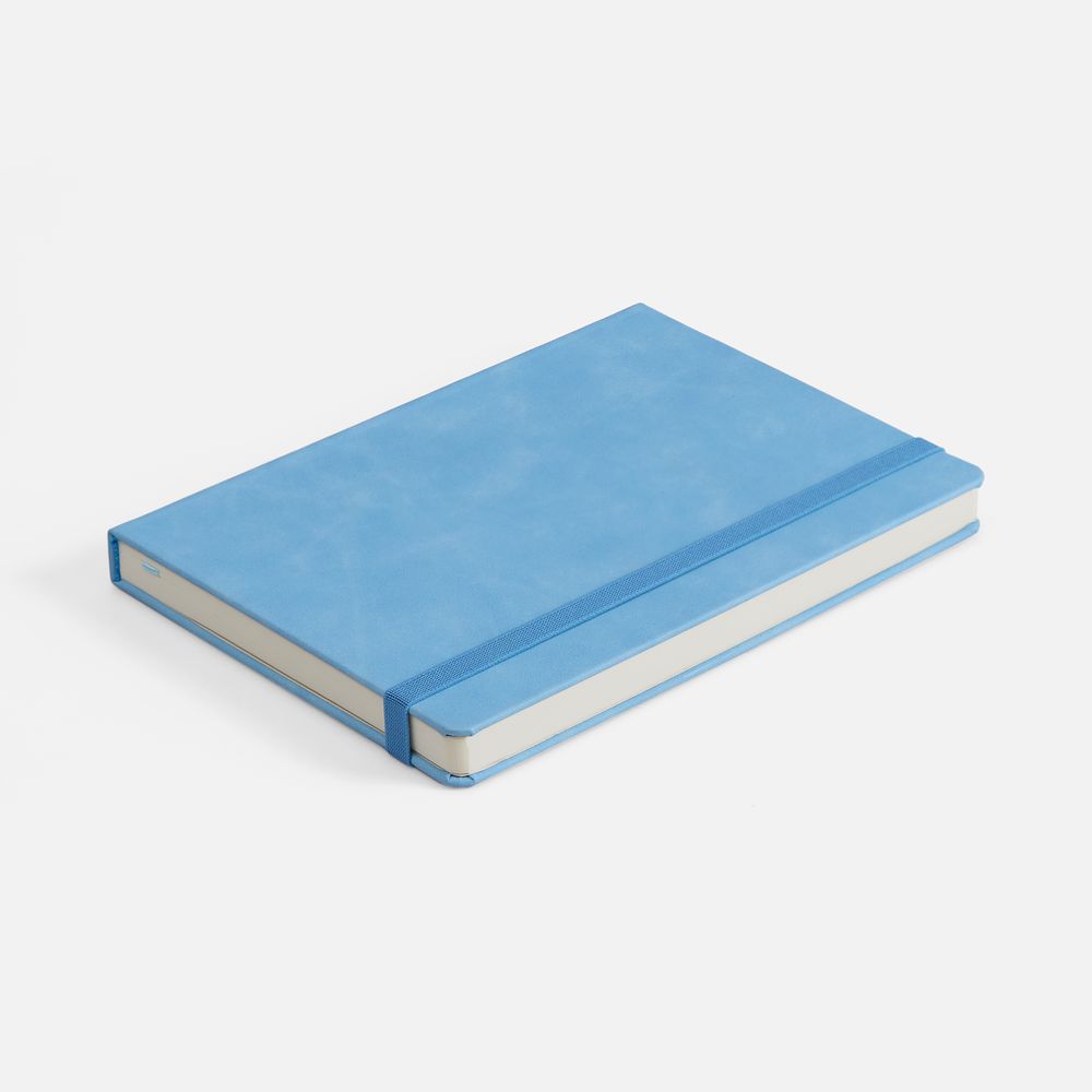 Ежедневник с твердой обложкой, выполнен из материала Nubuck Touch, голубой JJ, дополнен ляссе светло-голубого цвета.
