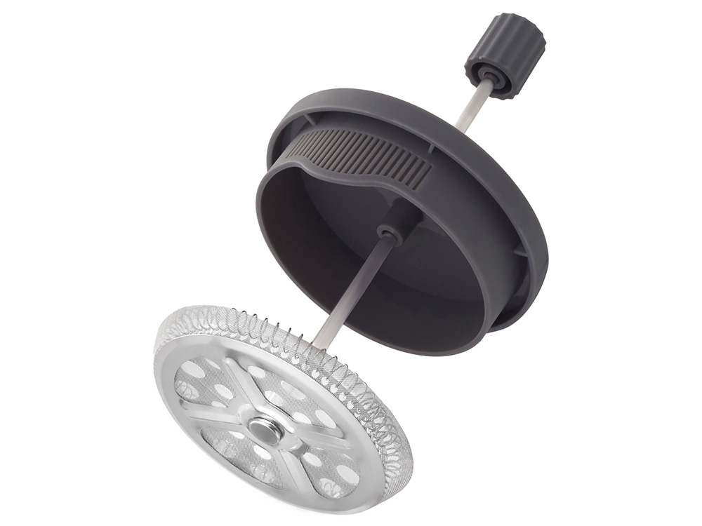 Френч-пресс Double Tone — элегантность контраста Сдержанная гармония черного и серого в пластиковом корпусе делает этот френч-пресс стильным акцентом любой кухни. Ключевые особенности: • Боросиликатное стекло, устойчивое к высоким температурам • Двухцветный корпус из ударопрочного пластика • Удобное поршневое крепление — плавное опускание • Стильная эргономичная ручка Технологии в деталях: • Система плавного прессования для идеальной экстракции • Универсальность: подойдет как для заваривания кофе, так и чая или травяных сборов • Объем 600 мл рассчитан на 3-4 чашки — оптимально для семейного использования или небольшой компании. Разрешается использовать в посудомоечной машине.