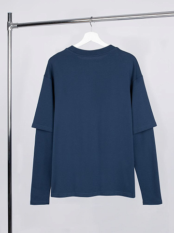 Футболка оверсайз с двойным рукавом Kosmos, темно-синяя купить оптом и в розницу с нанесением логотипа в Ростове-на-Дону