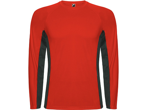 Футболка с длинным рукавом реглан из двух комбинируемых полотен. Основное полотно из структурного полотна, а боковые вставки и внутренняя сторона рукава из микроперфорированного полотна. Круглый вырез горловины дополнительно укреплен плоской строчкой. Комфортная и удобная модель