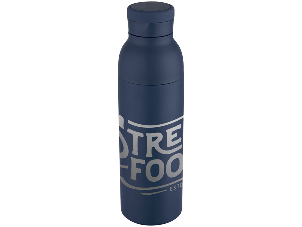 Illuminate бутылка-термос для воды с двойными стенками объемом 650 мл из переработанной нержавеющей стали, сертифицированной по стандарту RCS - Синий Navy купить оптом и в розницу с нанесением логотипа в Ростове-на-Дону