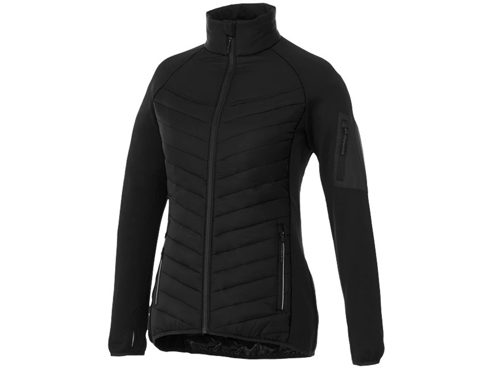 Женская утепленная куртка Banff. Внутренний противоветровой клапан и защита подбородка. Внутренний выход для медиапроводов. Удлиненная задняя часть изделия. Швы моделирующие фигуру и приталенный крой (женская модель).Манжеты-резинки контрастного цвета. Отделка контрастной тканью. Молния с контрастной лентой. Молния легкого скольжения. Петелька-вешалка. Комфортный ярлык-трансфер на изделии. 100% нейлоновая тканая матовая отделка 380T, водоотталкивающая и пухонепроницаемая ткань. Контрастная ткань: 94% полиэстер, 6% эластан с водоотталкивающей поверхностью. 38 г/м².