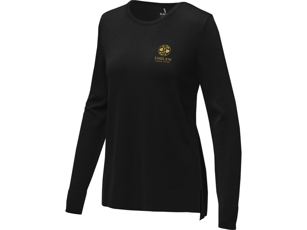 Женский пуловер Merrit. Круглый вырез. Воротник из гладкого трикотажа. С манжетами из гладкого трикотажа в рубчик. С подшивкой из гладкого трикотажа в рубчик. Атласная лента на воротнике Основная этикетка нанесена на ткань методом термоприклеивания без неудобных пришитых ярлыков.