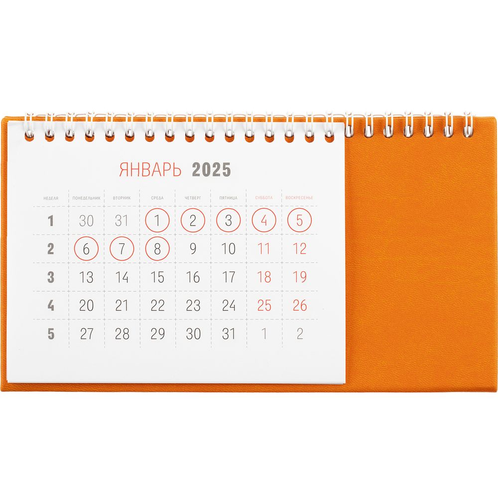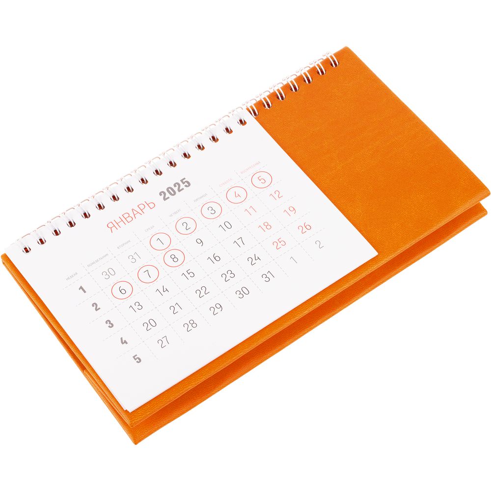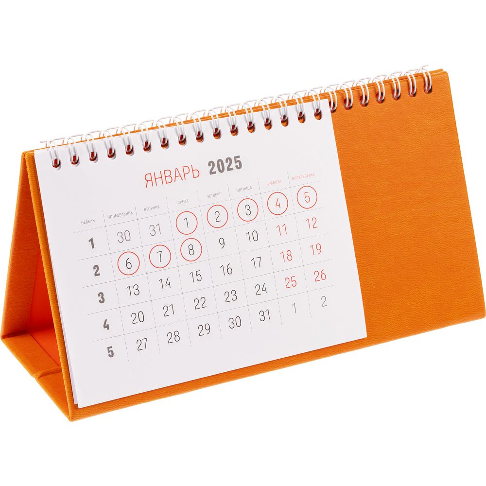 Настольный, перекидной календарь-«домик» выполнен из материала Latte, оранжевый ОО.