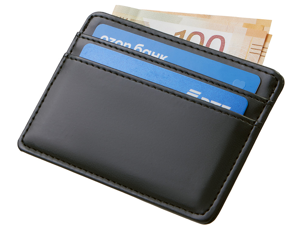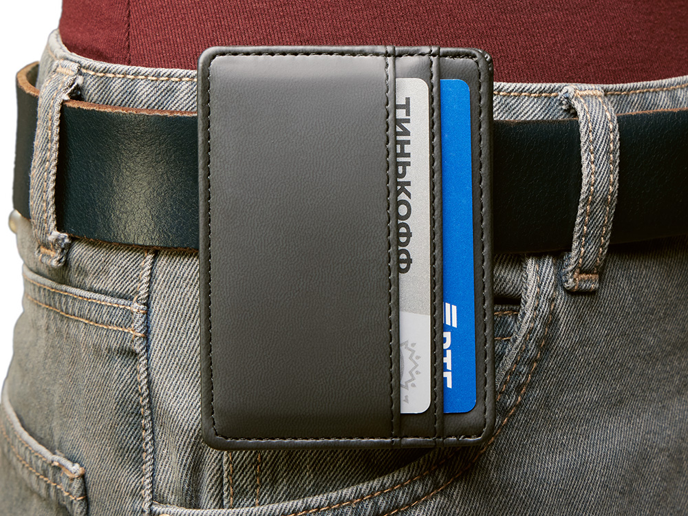 Картхолдер — стильное и практичное решение для деловых людей. В отличие от классических кошельков и портмоне он занимает совсем немного места и с лёгкостью поместится в карман. Данная модель благодаря зажиму на обороте также удобно цепляется за ремень джинс или на ланъярд. Картхолдер вмещает две карты и имеет отделение для купюр. Чтобы ещё больше порадовать клиентов, картхолдер можно вручить не пустым, а вложив в него что-нибудь полезное, например, скидочную карту или свою визитку, чтобы ваши контакты всегда были под рукой. Строгий и лаконичный дизайн Функциональный бизнес-подарок