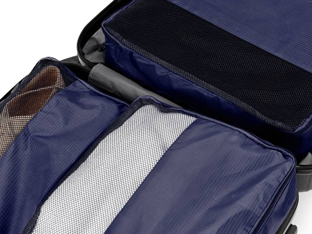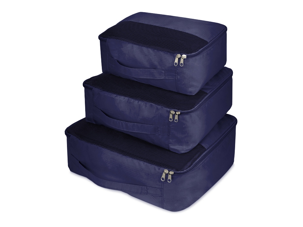 Набор упаковочных сумок – функциональный аксессуар для эргономичного упаковывания различных предметов в багаже. Комплект содержит три чехла разных размеров, удобных для рассортировки и складывания вещей в чемодане или дорожной сумке. • Изделия изготовлены из прочной, но легкой ткани рипстоп и не утяжеляют багаж. • Сумки удобны в пользовании: их верхняя часть полностью откидывается, облегчая упаковывание вещей, и застегивается на молнию. • Сетчатая вставка сбоку позволяет увидеть содержимое, а удобная ручка – вытащить ту из сумочек, в которой находится нужная вещь. • Практичный набор будет полезен не только в путешествии, но и дома для эргономичного хранения вещей в шкафу.