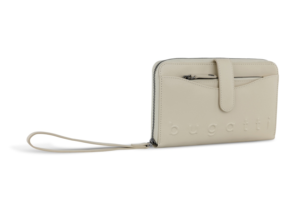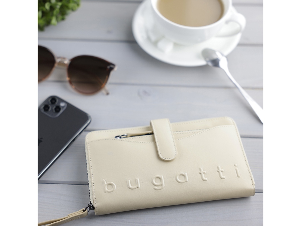 ЖЕНСКИЙ КОШЕЛЕК DAPHNE С КЛЮЧНИЦЕЙ И ЗАЩИТОЙ ДАННЫХ RFID Лаконичный дизайн коллекции DAPHNE станет идеальным украшением женского образа. Все модели серии изготовлены из высококачественной гладкой воловьей кожи и представлены в черном, коньячном и бежевом цветах. Благодаря классической цветовой палитре все изделия можно комбинировать друг с другом для идеального сочетания. Акцентное тиснение логотипа bugatti выполнено вручную с максимальной филигранностью. Оригинальные плетеные ручки и металлические детали придают очарование коллекции, создают элегантный и одновременно спортивный образ. СВОЙСТВА Функциональная организация: основное отделение на молнии, 12 слотов для карт, 2 отделения для купюр, 2 кармана, отделение для монет на молнии, съемная ключница, ремешок на запястье, защита данных RFID. Размер (длина, глубина и высота): 19 х 3 х 11 см Вес: 0,175 кг