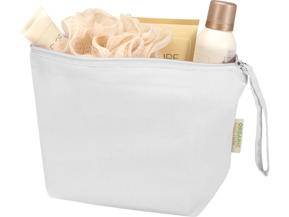 Большая и вместительная косметичка Odisha изготовлена из 100% сертифицированного OCS органического хлопка плотностью 180 г/м², произведенного в Индии. Имеет ремешок для удобной переноски. Объем: 3 литра.