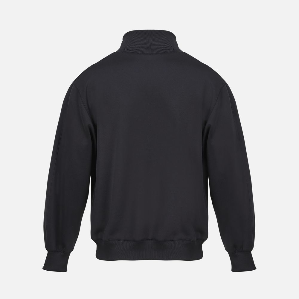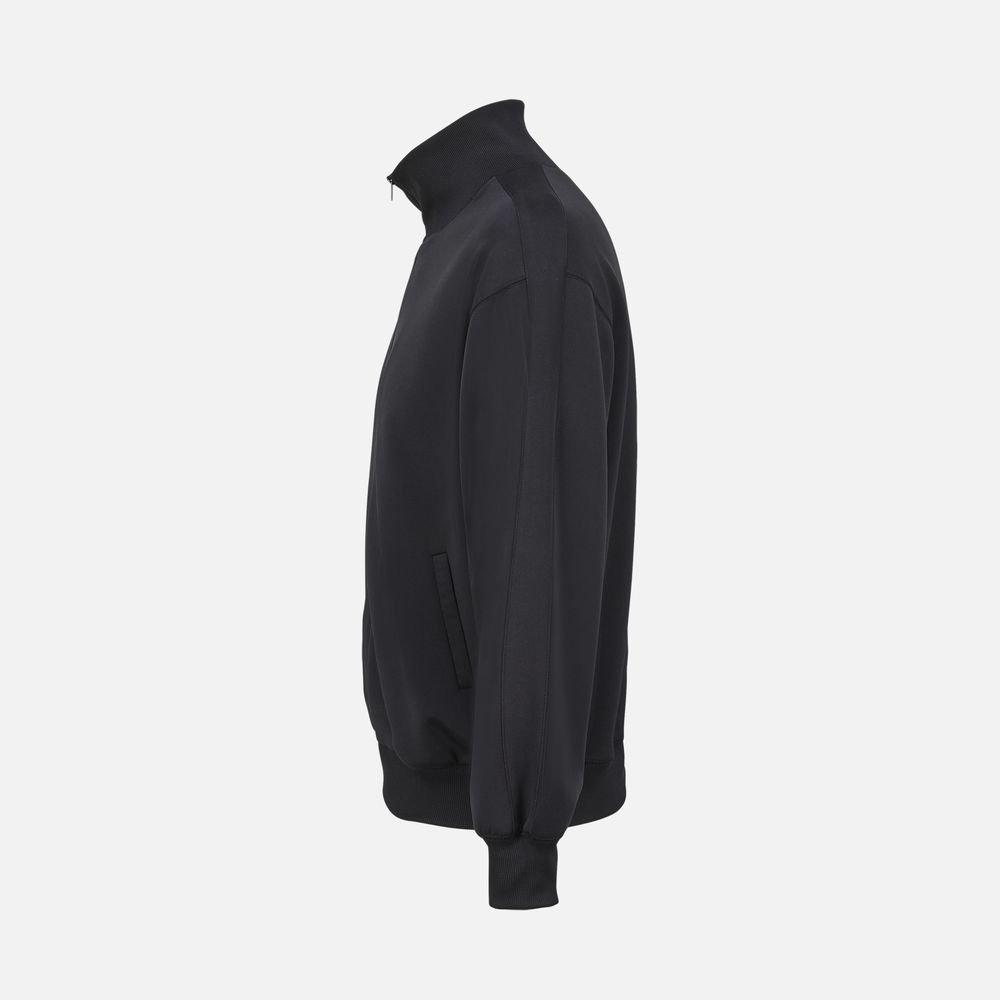 Спортивная куртка со свободной посадкой. Выполнена из высокотехнологичного трехслойного материала, известного как ткань скуба или трикотажный неопрен, в самом центре которого спрятаны объемные нити текстурированного полиэстера.
