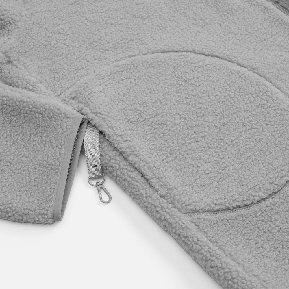 Куртка дополнена двумя боковыми карманами, и в правом предусмотрен карабин для ключей или пропуска — практичная деталь для повседневной жизни. Молния с двойным бегунком позволяет регулировать посадку и добавляет функциональности.