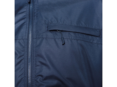 Удобная стеганая куртка из очень прочной ткани с высоким воротником. 1. Молния спереди c защитой для подбородка. 2. Три наружных карманы с клапаном и молнией. Один нагрудный карман с правой стороны и два кармана по бокам.