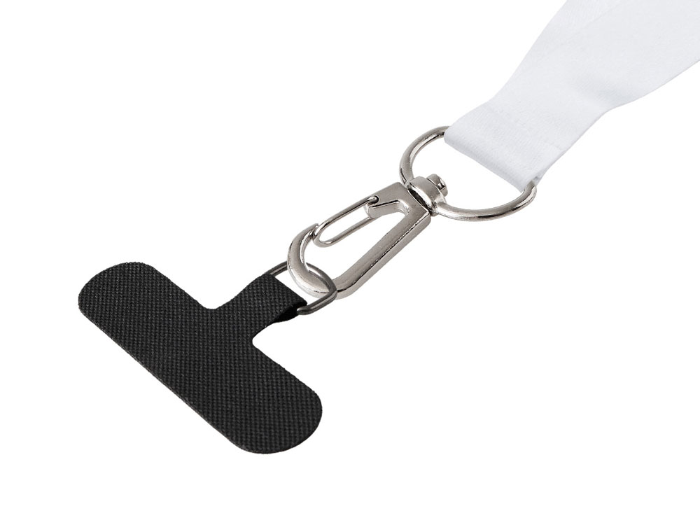 Ланъярд 2 см под сублимацию с трендовым карабином и узким держателем для телефона из ПЭ, серебристый