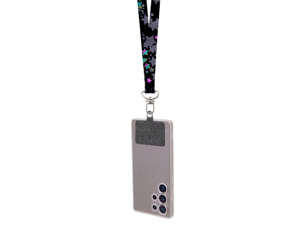 Ланъярд 2,5 см под сублимацию с трендовым карабином, замком обрыва и большим держателем для телефона из ПЭ