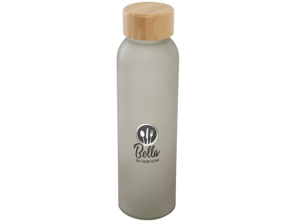 Lume бутылка из матового содово-известкового стекла объемом 500 мл с бамбуковой крышкой - Серый купить оптом и в розницу с нанесением логотипа в Ростове-на-Дону