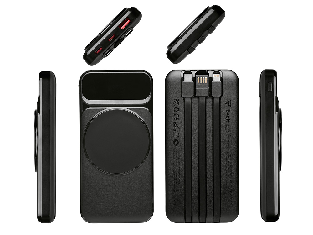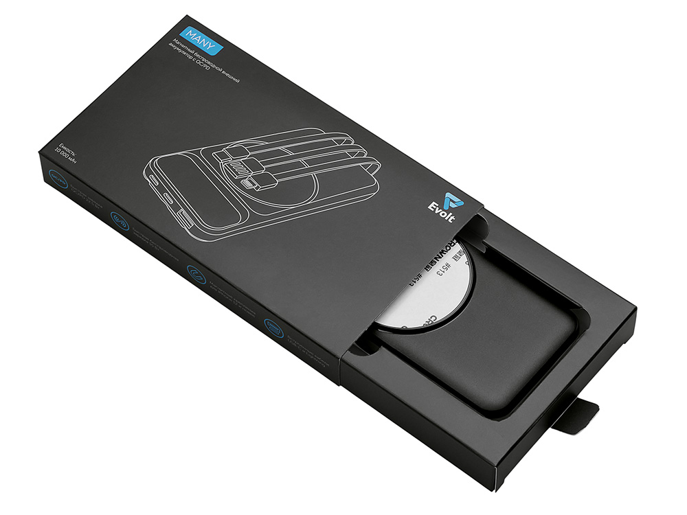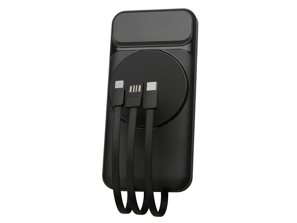 Функциональный и удобный внешний аккумулятор на 10 000 мАч обеспечивает быструю зарядку как по кабелям, так и беспроводным способом, поддерживая современные стандарты скорости. Цифровой дисплей на верхней панели мгновенно показывает точный уровень заряда, а встроенные кабели Lightning, USB-C и входной USB-A устраняют необходимость в дополнительных проводах — всё, что нужно для каждодневного использования, уже есть в самом гаджете. Компактные габариты, сопоставимые с размером смартфона, делают устройство идеальным для путешествий и повседневного использования. Сильные магниты гарантируют надёжное крепление при беспроводной зарядке. В комплекте есть силиконовая накладка: перед использованием удалите защитный стикер и прикрепите её к корпусу. - Встроенные кабели (Lightning, USB-C, USB-A) — не нужно искать дополнительные кабели: зарядка других устройств и подзарядка аккумулятора происходят через встроенные кабели. - Сильные магниты - Цифровой дисплей уровня заряда и статуса зарядки - Функции быстрой проводной до 22.5 Вт и беспроводной зарядки до 15 Вт - Упаковка с удобным и быстрым открытием