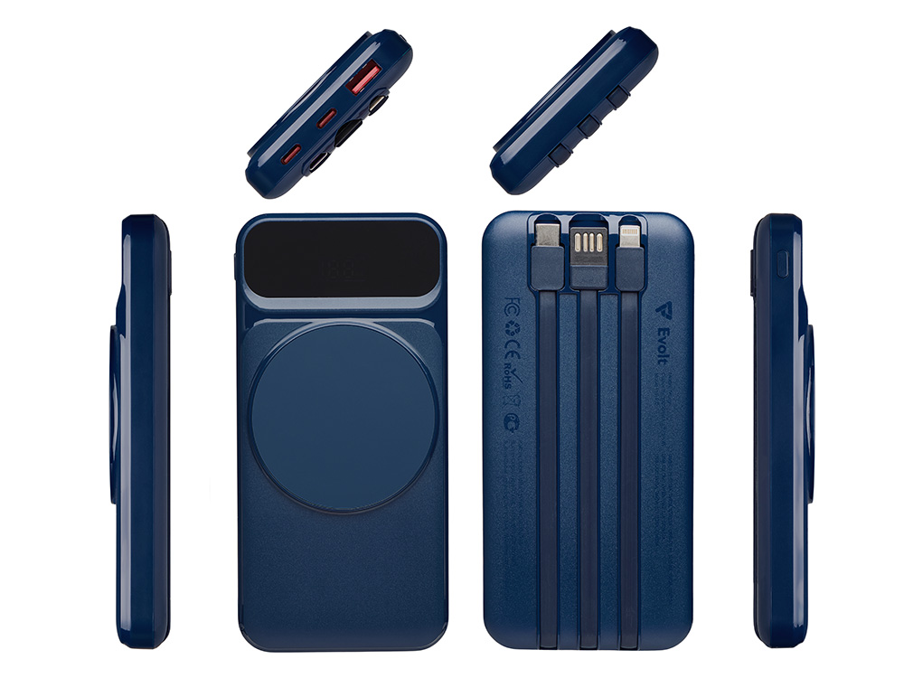 Функциональный и удобный внешний аккумулятор на 10 000 мАч обеспечивает быструю зарядку как по кабелям, так и беспроводным способом, поддерживая современные стандарты скорости. Цифровой дисплей на верхней панели мгновенно показывает точный уровень заряда, а встроенные кабели Lightning, USB-C и входной USB-A устраняют необходимость в дополнительных проводах — всё, что нужно для каждодневного использования, уже есть в самом гаджете. Компактные габариты, сопоставимые с размером смартфона, делают устройство идеальным для путешествий и повседневного использования. Сильные магниты гарантируют надёжное крепление при беспроводной зарядке. В комплекте есть силиконовая накладка: перед использованием удалите защитный стикер и прикрепите её к корпусу. - Встроенные кабели (Lightning, USB-C, USB-A) — не нужно искать дополнительные кабели: зарядка других устройств и подзарядка аккумулятора происходят через встроенные кабели. - Сильные магниты - Цифровой дисплей уровня заряда и статуса зарядки - Функции быстрой проводной до 22.5 Вт и беспроводной зарядки до 15 Вт - Упаковка с удобным и быстрым открытием