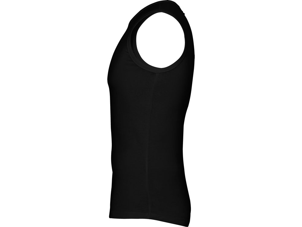 Мужская майка узкого силуэта с V-образным вырезом горловины. Отделка рибом по горловине и пройме.
