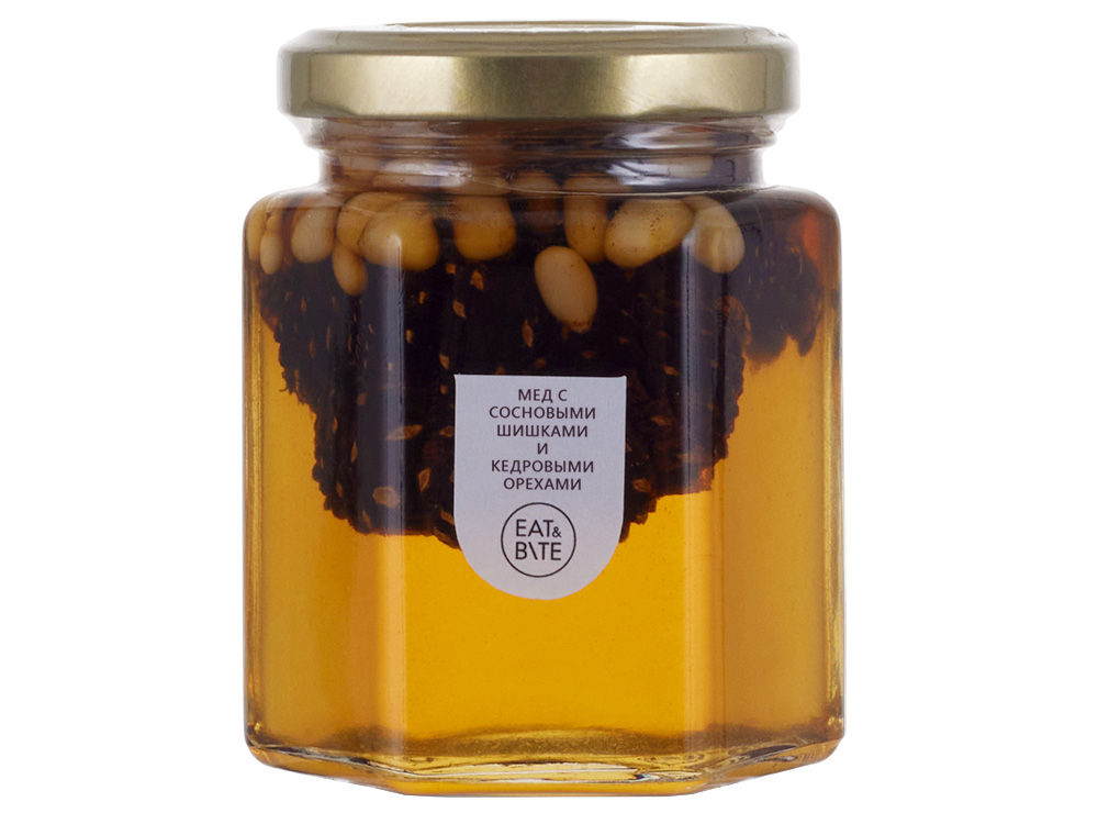 Состав мед натуральный, сосновая шишка, ядро кедрового ореха