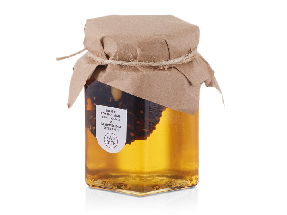 Мед с сосновой шишкой и кедровым орехом 250 гр. купить оптом и в розницу с нанесением логотипа в Ростове-на-Дону
